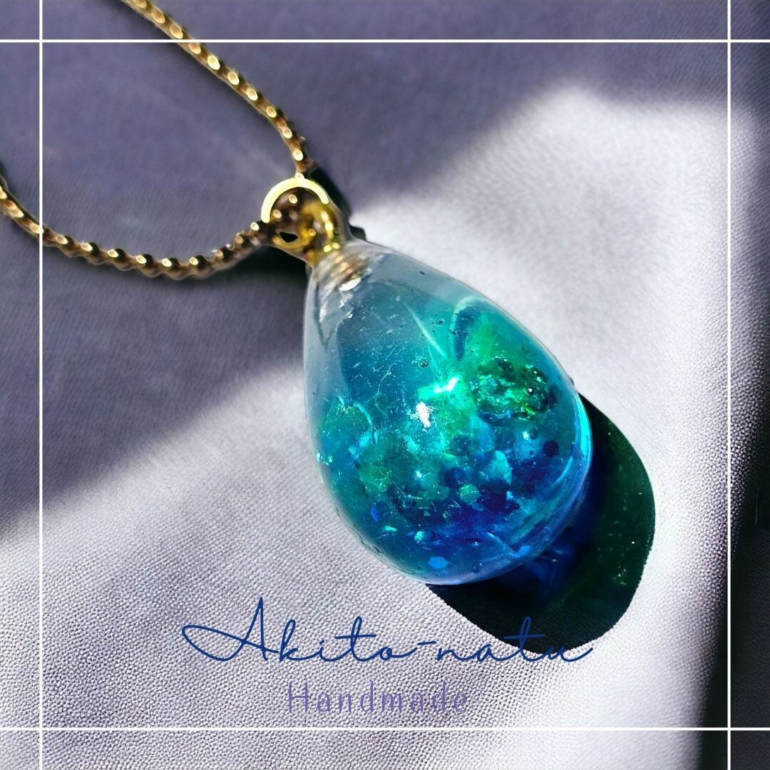 このチャームは、まるで海の雫がぶら下がっているよう。